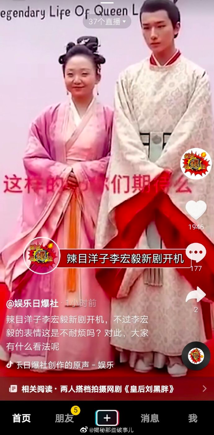 网剧《皇后刘黑胖》今天开机了,女主辣目洋子,男主是李宏毅,讲的是胖黑女主vs小皇帝先婚后爱的题材,这种配置在古言算是很少见的了吧。