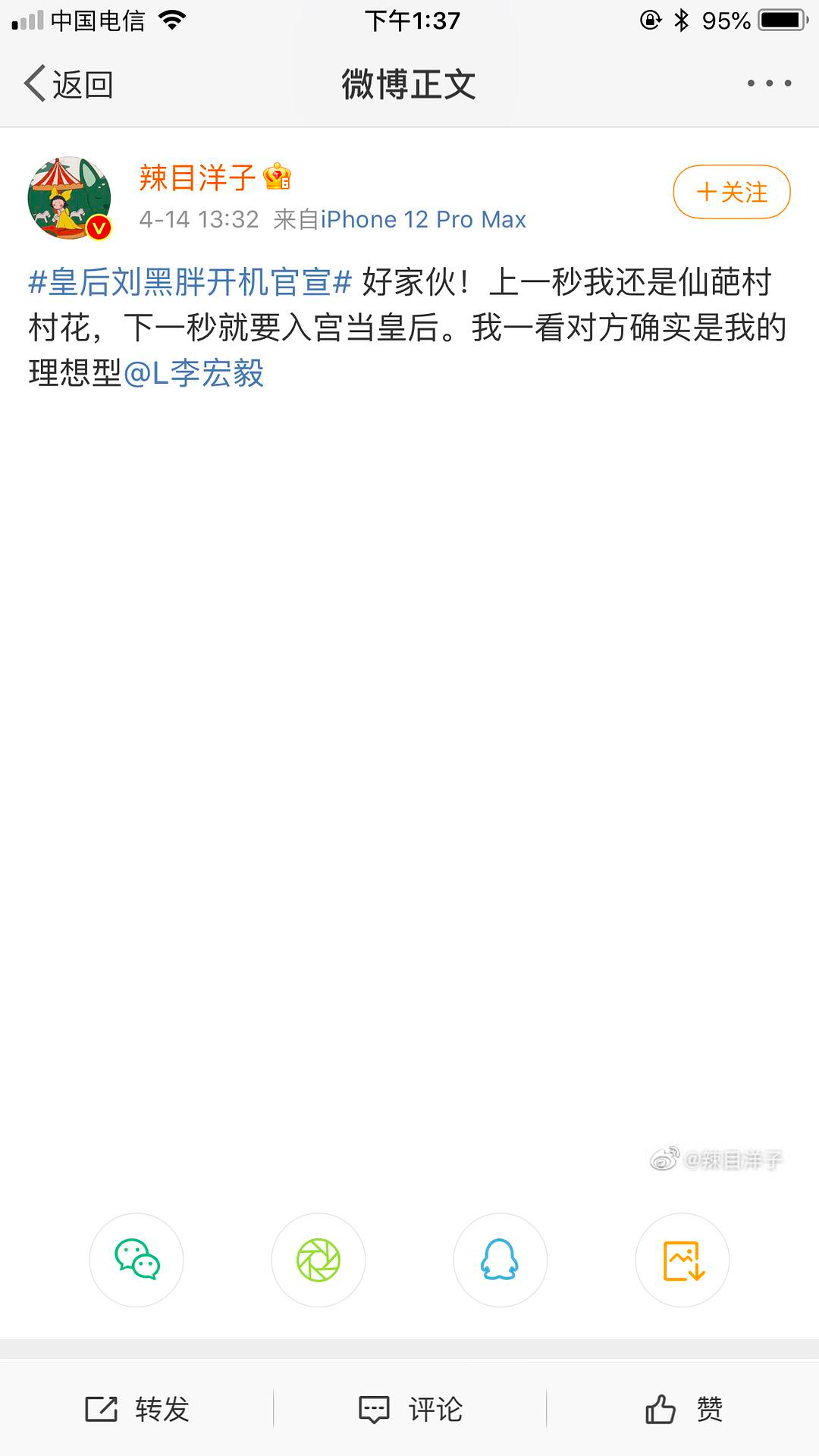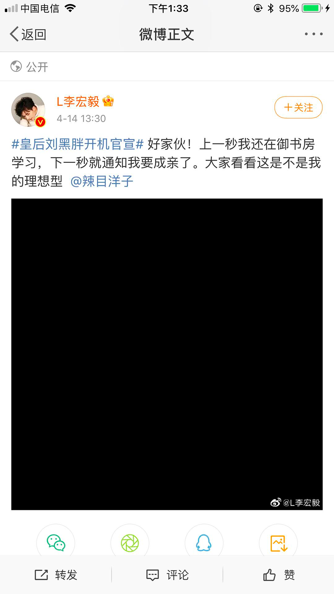 不过李宏毅有马上发微博宣传《皇后刘黑胖》,还艾特了女主辣目洋子。