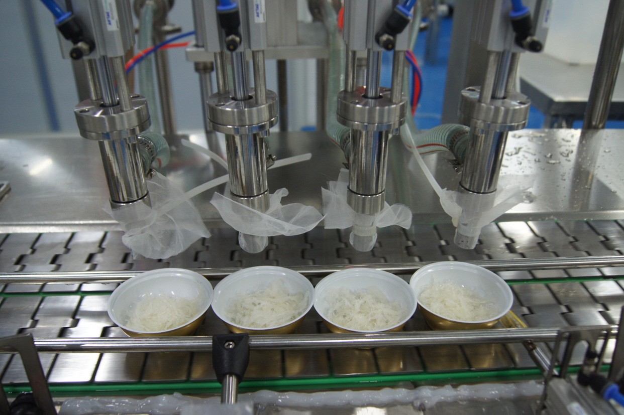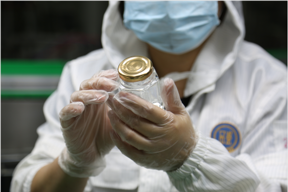当人工投料完之后,全自动灌装机会采用分段灌注的方式,将糖水分2次注入瓶内,灌装后的即食燕窝会被送去进行真空封口,其密封性将得到很好的保障。
