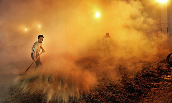 二是端午踩曲,每年端午节前后开始制大曲,重阳节前结束。这段时间温度较高,微生物更容易滋生,更有利于大曲富集微生物;