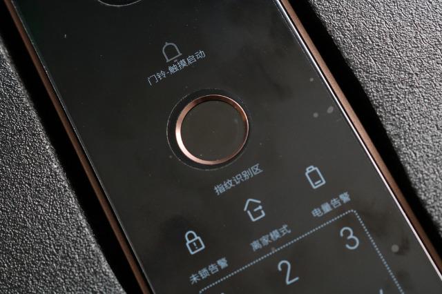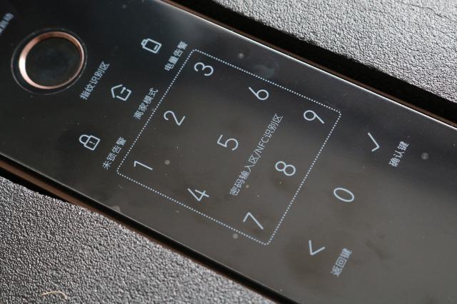 它的数字解锁区是把*和#键改成了返回及确认键,作用其实是一样的。等撕去这个带有数字的保护膜之后呢,只有在通电时才能唤醒解锁面板区域。当然它还在面板两侧位置搭配了呼吸灯设计,通过白色及红色区分,来告知正确与错误的操作。使用的时候呢个人还是感觉这个面板材质易留下操作痕迹。