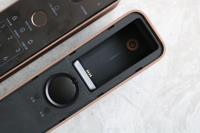 Aqara全自动智能猫眼锁H100对于外观的设计保护是非常好的,它的电池部分及设置按键都需要用手撬开底部盖板才能看到。
