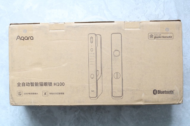 Aqara全自动智能猫眼锁H100的外包装采用了比较适合对于远途运输的牛皮纸包装。外包装也是把锁体的外观展现出来,作为全自动智能猫眼锁,也把几个突出的亮点展现出来:支持APPLE HomeKit、蓝牙连接、支持1080p高清摄像头、智能侦查,逗留提醒。当然下方咱们也会根据这几个功能来进行实际体验。