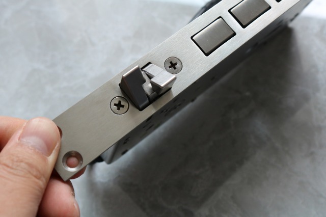 它的这个锁舌部分与普通的锁舌不一样采用了交叉锁舌,不用区分左开门还是右开门。安装时不用再此调成锁舌位置。