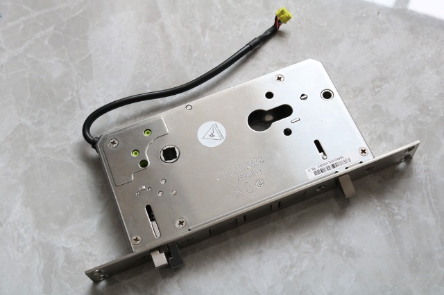 这是它的全自动锁体,把驱动装置内嵌到锁体当中,在解锁速度上有所提升。这一点也是我使用了几款智能锁之后,与众不同的地方,其他品牌智能锁都是会把驱动装置安装在内置面板内侧。