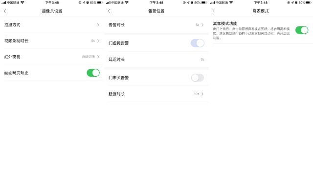 而且对于猫眼摄像头还可以进行拍摄方式、时长、画面矫正等操作。对于门未锁告警的提示可以进行时间延长等操作。