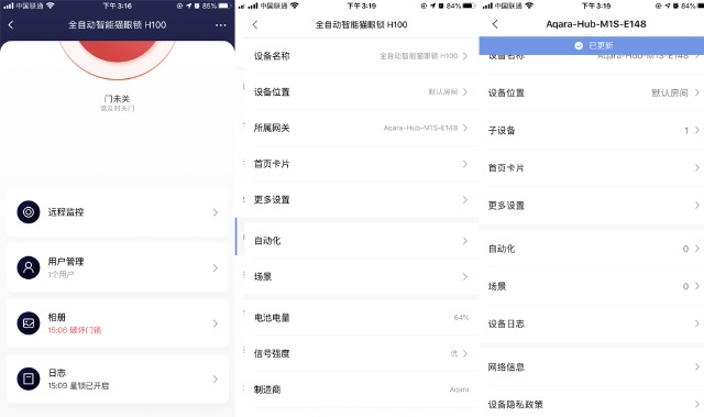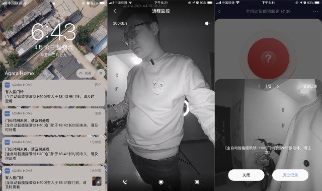 Aqara全自动智能猫眼锁H100在功能上略显独特及安全,其整体包括: