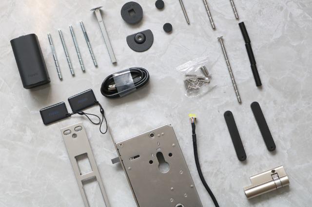 配件:电子锁体、锁芯、应急钥匙(2把)、门口板、配件包、锂电池、Type-C充电线、NFC卡(2片)。