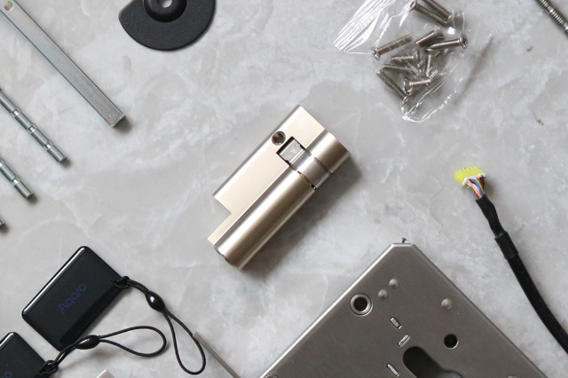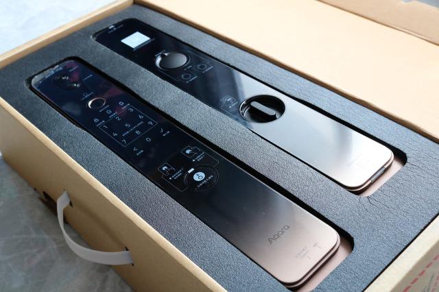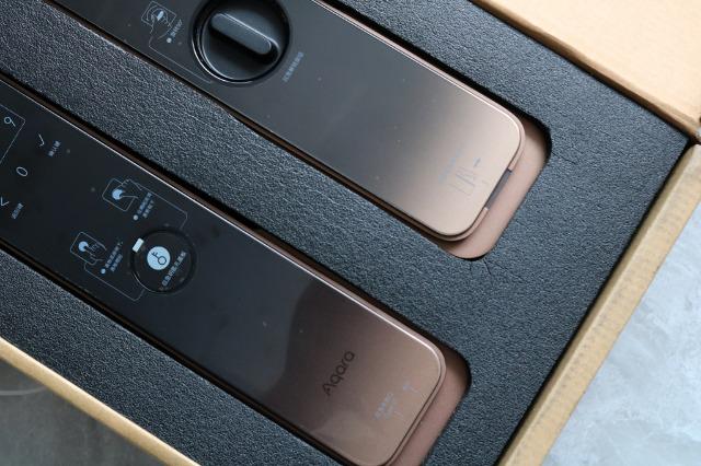 内部包装呢是用模具硬塑料包裹,共分为上下两层,上边是智能内外锁体,下方是锁芯及配件等。当看到内外门锁体时个人感觉到Aqara真的是把所有的心思都花在了这上面做工上,第一眼看上去尤为精致。