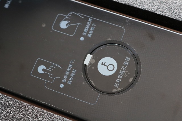 此款智能锁保留了传统钥匙开锁,为了安全性,也采用了通用的隐藏式设计,通过隐藏盖板来保护锁眼。