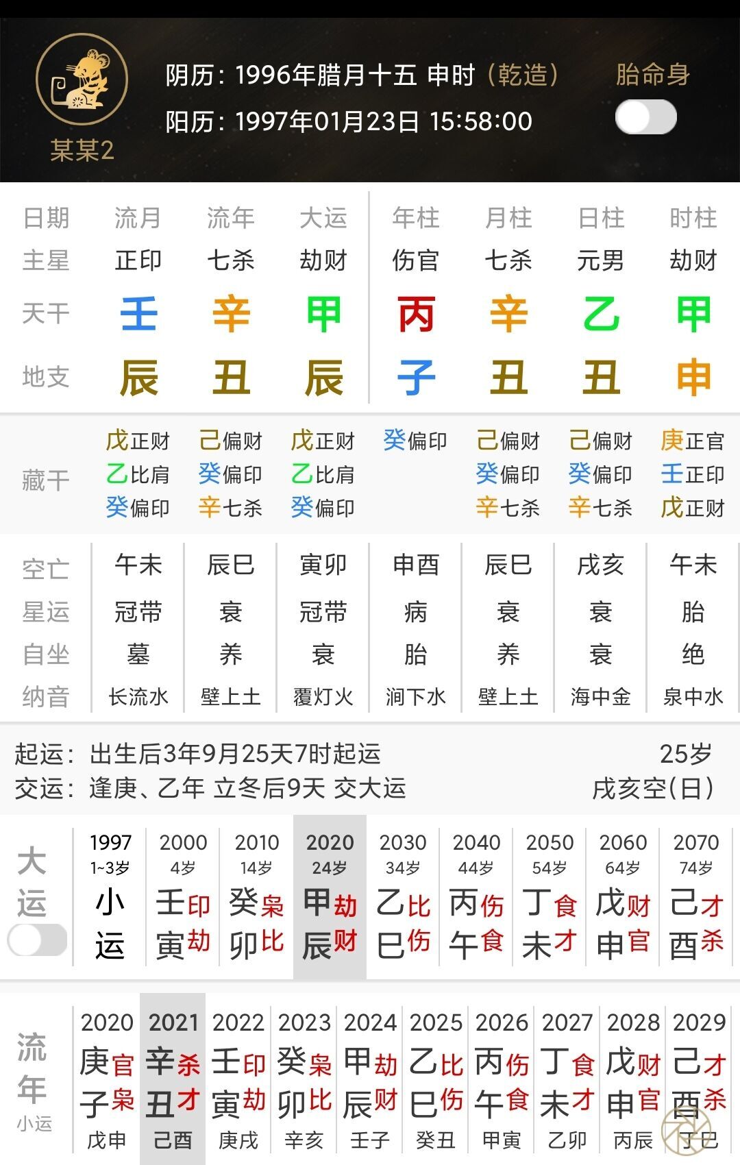 现在是甲辰大运(2020到2030年),今年2021辛丑年!