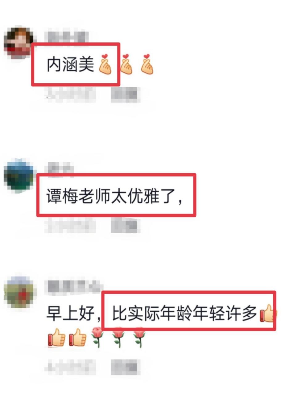 在视频发出后,引来了众多网友的热议,有的网友说谭梅太优雅了很有内涵美,还有的网友称她看起来比实际年龄年轻许多。