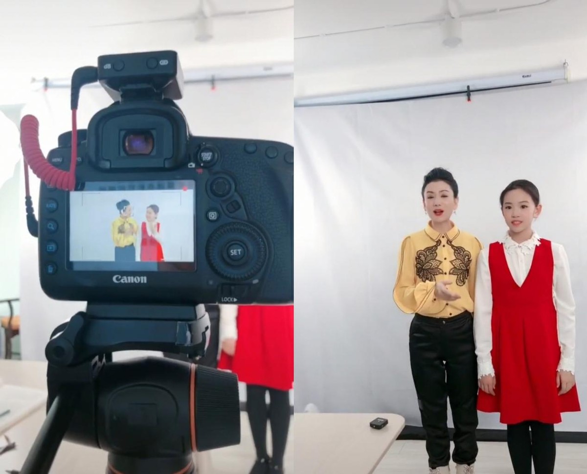 家庭生活之余,谭梅也并未放弃个人的事业发展,她近来常忙于自己的教育培训机构。画面中她带着精致妆容,穿着黄色衬衫搭配黑色裤子,站在红衣小女孩身旁指导教学,镜头中师生二人的互动很是生动。