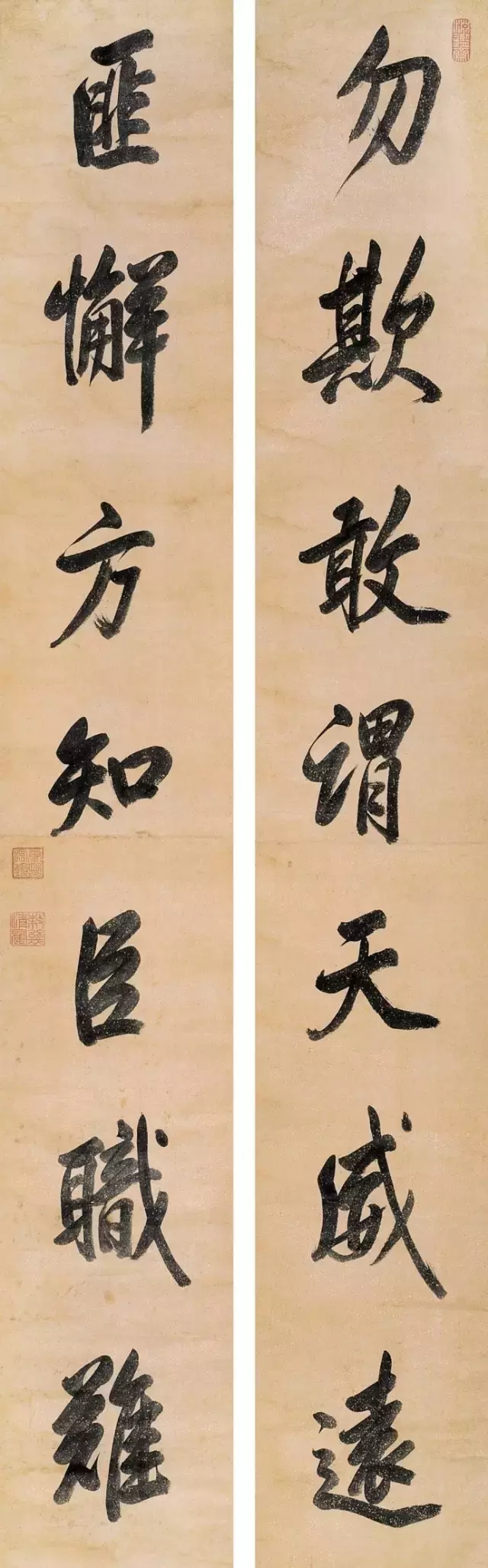 康熙 行书勿欺匪懈七言联 中鼎国际2005 成交价68.2万元