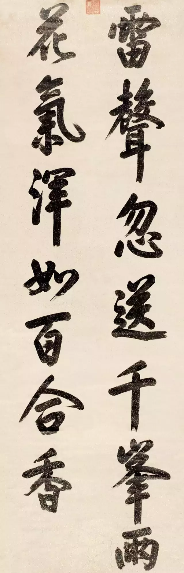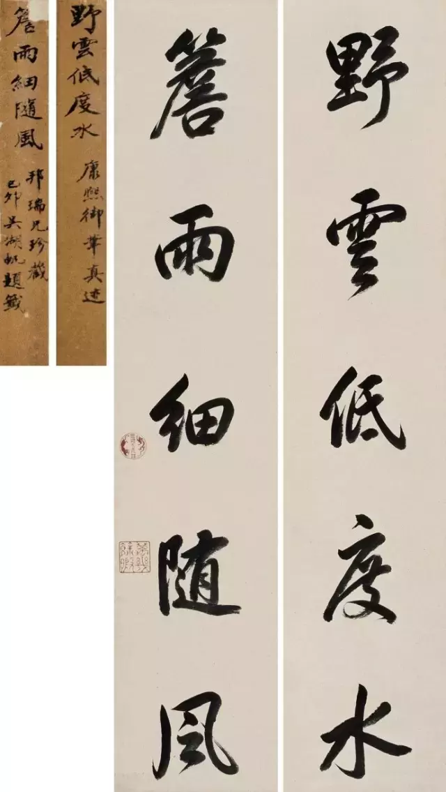 康熙 行书野云檐雨五言联 瀚海2013秋拍 成交价63.25万元