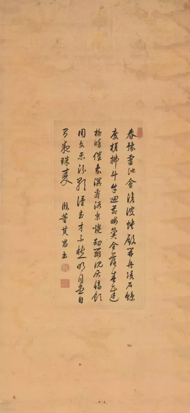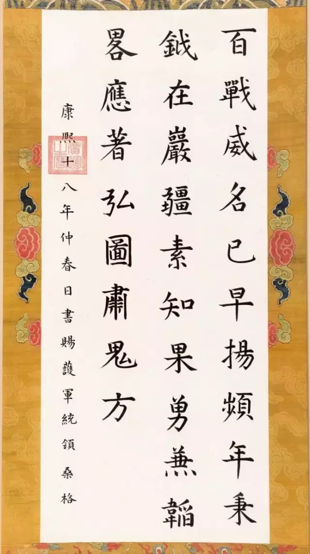 康熙皇帝自幼接受汉文化教育,本人十分喜爱书法,曾拜擅长书法、专学董其昌的沈荃为师,受其影响,亦极其推崇董其昌的风格。康熙皇帝身体力行,写得一手董氏书体。