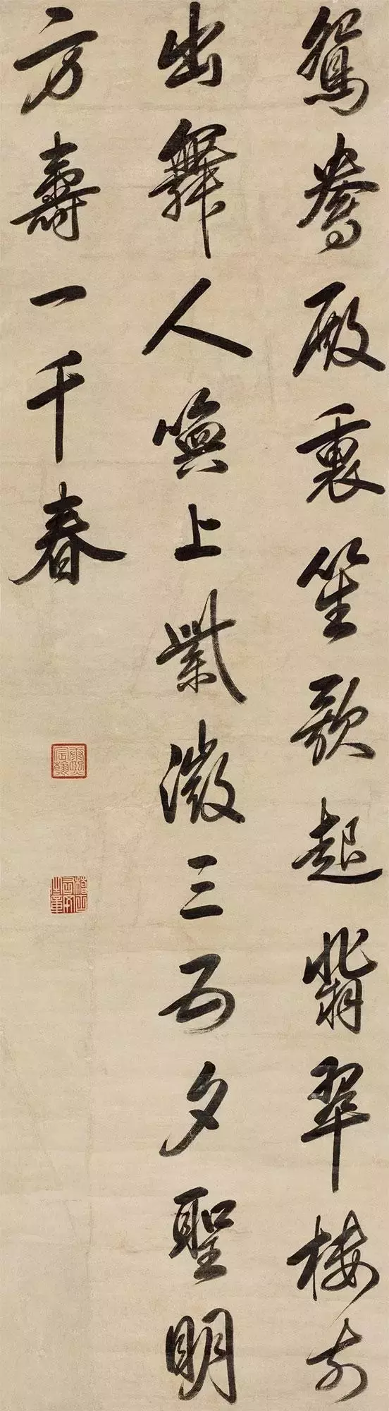 康熙帝 行书唐宋之问《奉和晦日幸昆明池应制》诗 嘉德2011春拍 成交价483万元