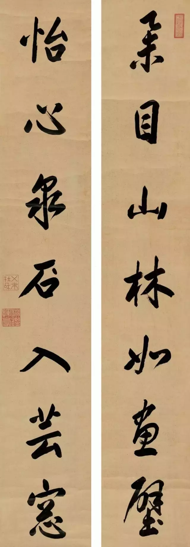 康熙 楷书举目怡心七言联 保利2011春拍 成交价322万元