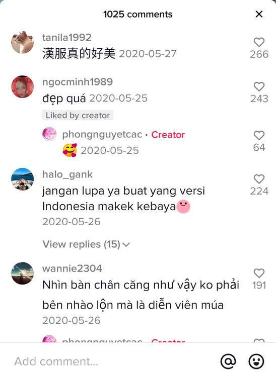 而不同于国内的社交媒体平台,TikTok视频下的评论往往会汇集各国网友发出的各种语言的评论。