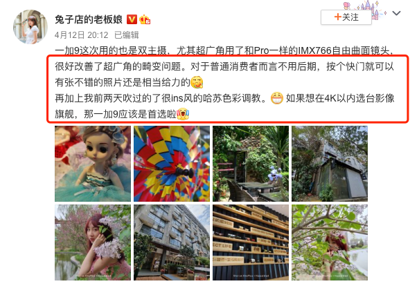 我自己体验了一加9 Pro的超广角镜头后,也上网看了一些网友对一加9 Pro超广角镜头的评价,发现与我的体验相当。更重要的是,网友们拍摄的超广角样张不少效果比我更好,大家不妨去搜索看一下。