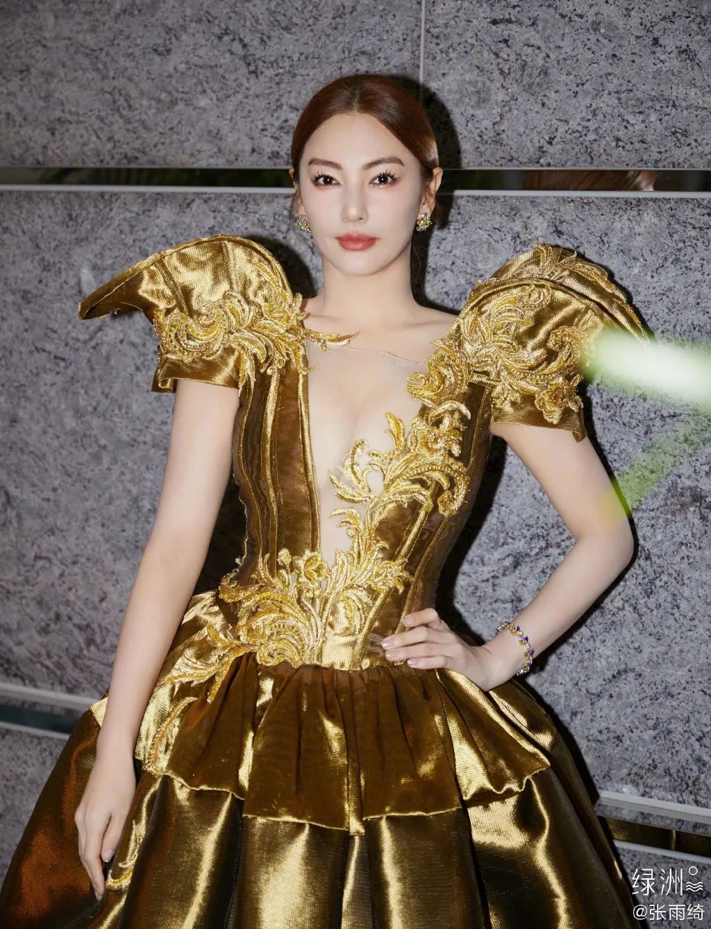 活动当晚张雨绮的红毯造型可谓是艳光四射。身着郭培金色高定裙亮相的她一出场就秒杀无数菲林。