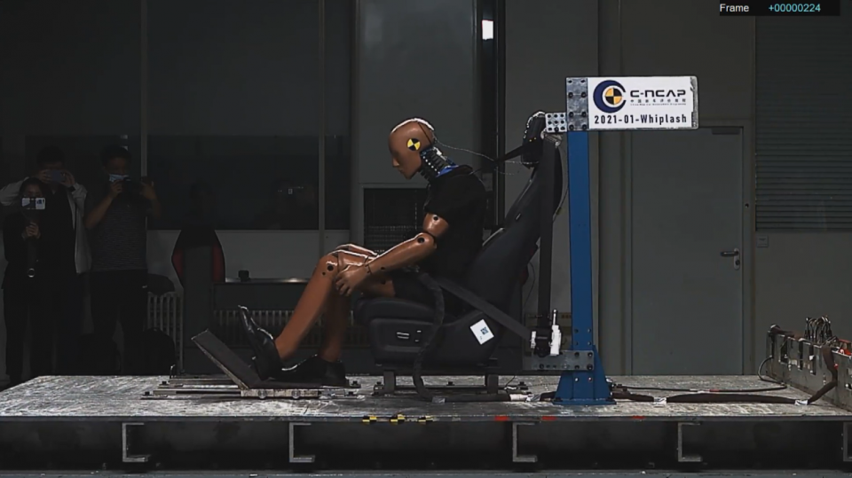 鞭打试验,主要测试在追尾事故中,座椅和头枕对乘客颈部的保护效果。当车辆发生追尾事故时,人的颈部和头部由于惯性作用,会形成一个鞭打效应,所以颈椎很容易受到伤害,而依靠头枕和座椅的合理设计及包裹性,则可以有效防止这一现象的发生。