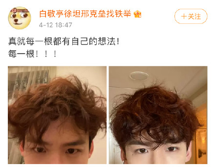 首先是白敬亭自带的卷卷发型,没有戴帽子的小白,露出了卷卷的头发,发型慵懒风十足。我猜这发型并不是特意搭理的,因为是深夜,不用出席活动,也不让粉丝接机,所以这应该是白敬亭白天打理后逐渐恢复的原本发型,即白敬亭口中“每一根都有自己想法的头发”。