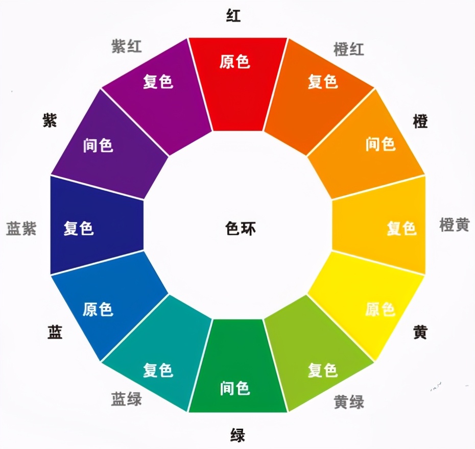学习设计之前,首先要了解一些基础知识。我们知道原色是三种基本颜色红、黄、蓝,那你知道什么叫二次色吗?二次色也称作间色,是由两种原色混合得来的。红色加黄色可得到橙色;黄色加蓝色可得到绿色;而蓝色加红色可得到紫色。如果我们把这些颜色混合在一起,就会得到更多的中间色调,比如红橙色和黄绿色,然后,它们就形成了所谓的色轮。
