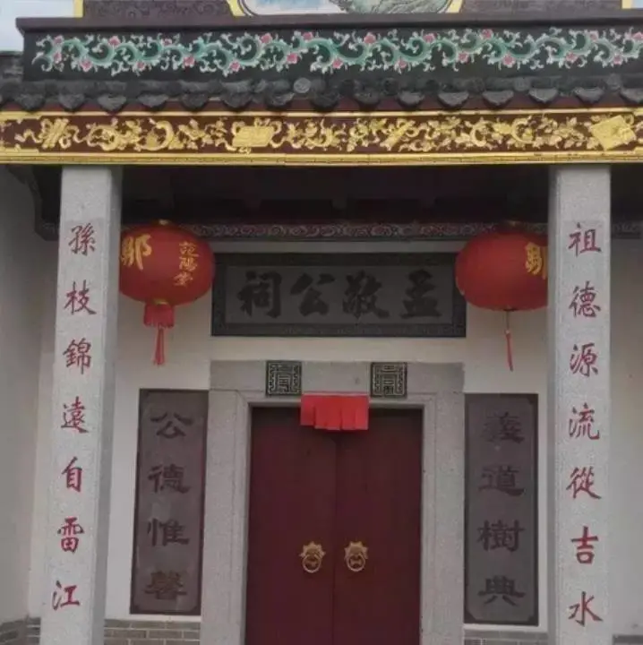孟敬之父原逊公,元朝进士,随印立籍筠州(筠jun,老谱错载为“祯”,今宜春市),七十赐归故里吉水。原逊公元配胡氏,生孟修、孟敬。孟敬公元末明初弃儒从商,由吉水商迁循州龙川,先客寓仙德都石镇松树街,后率文兴、文富二子于洪武四年(1371)立籍循州府龙川县宁仁都大和甲松林背红庵里,为广东龙川邹氏始迁祖。洪武二十年丁卯(1387),孟敬公迁龙川才十六年便始修了龙川《邹氏族谱》。北直吏部侍郎肖义伟在此谱《跋》文中留有“龙川邹氏先来自吉水文江”;龙川石痕祖屋正堂对联“祖德源流从吉水,孙枝绵远自雷江”及龙川松林背红庵里祖厅正堂对联“祖泽流长遥溯源泉从吉水,孙枝秀发丛生弈叶附松林”也留有龙川邹氏源于江西吉水的墨宝。龙川孟敬公尽管祖源来自江西吉水,其支系错系祖源的历史却很悠久。