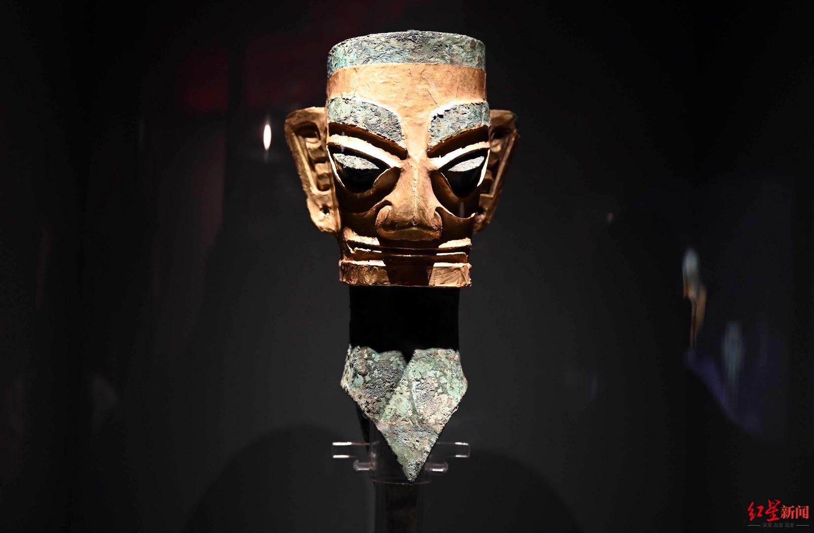 三星堆博物馆戴金面罩青铜人头像