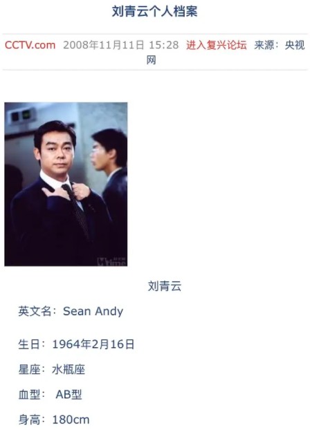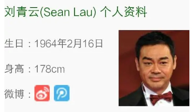 还有一部上世纪九十年代的老片,剧中的刘青云入警局量身高,当时穿鞋的身高是5英尺11英寸,那么和古早档案也对得上。就算是一些内地档案,在百度百科被恶意篡改前,他的身高也是178cm或180cm。因为平台们参考刘青云的古早档案,基本就是这身高区间。