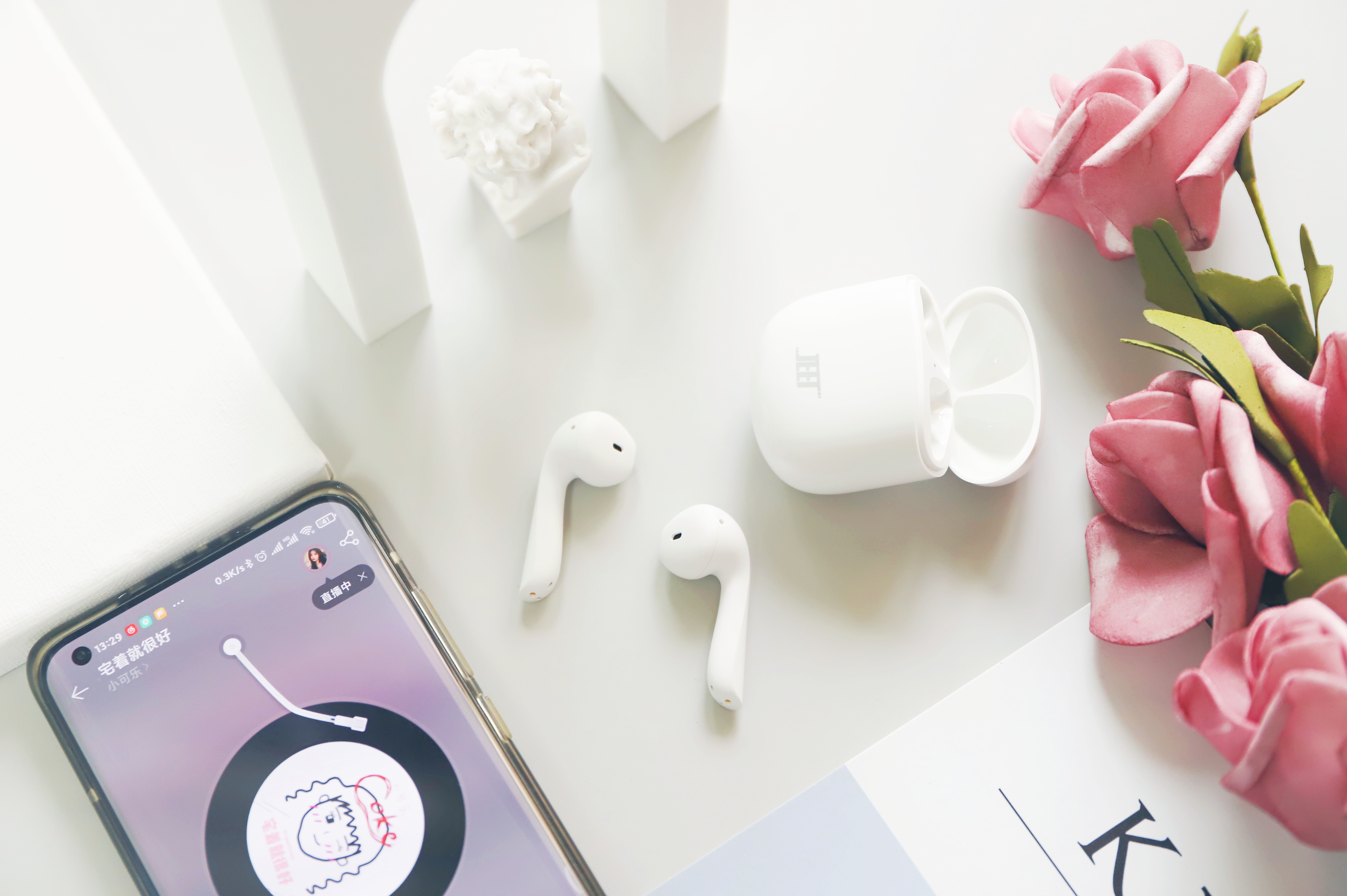 打开盒子,里面是说明书,耳机仓下面是一条type-c电源线,整天包装很环保。耳机有黑、白两种配色,老狐到手的是白色,看起来很活跃。
