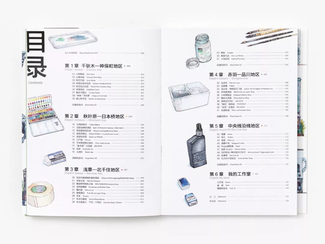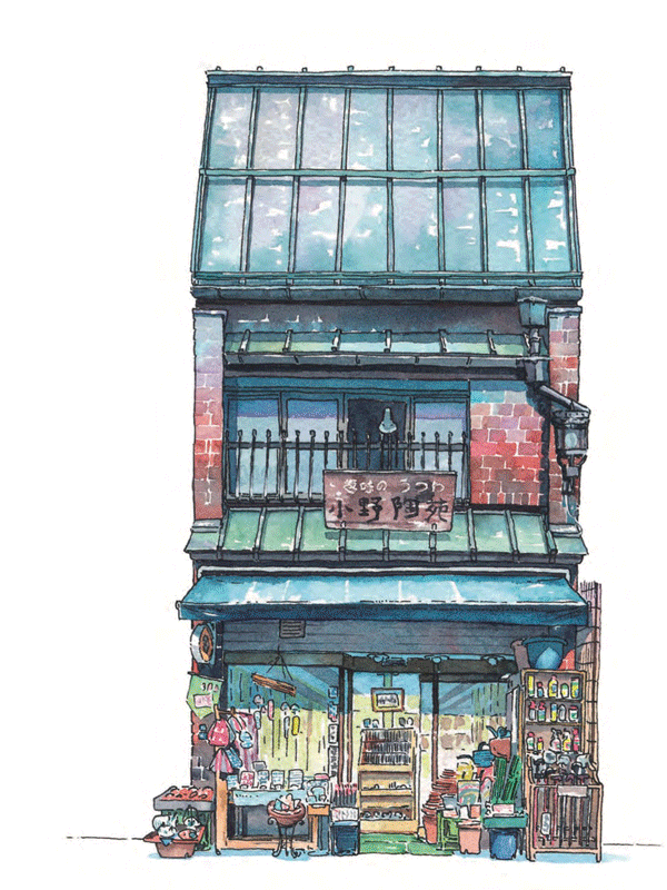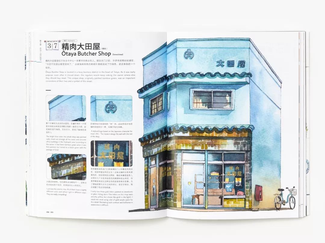 书中精选东京街头50家风格各异的老铺子,以水彩插画还原了一些至今消失不见的店铺细节,狂卖10w册,风靡中日手绘圈。