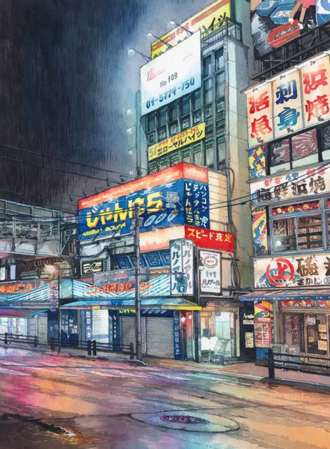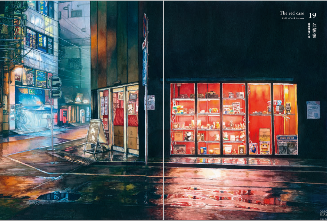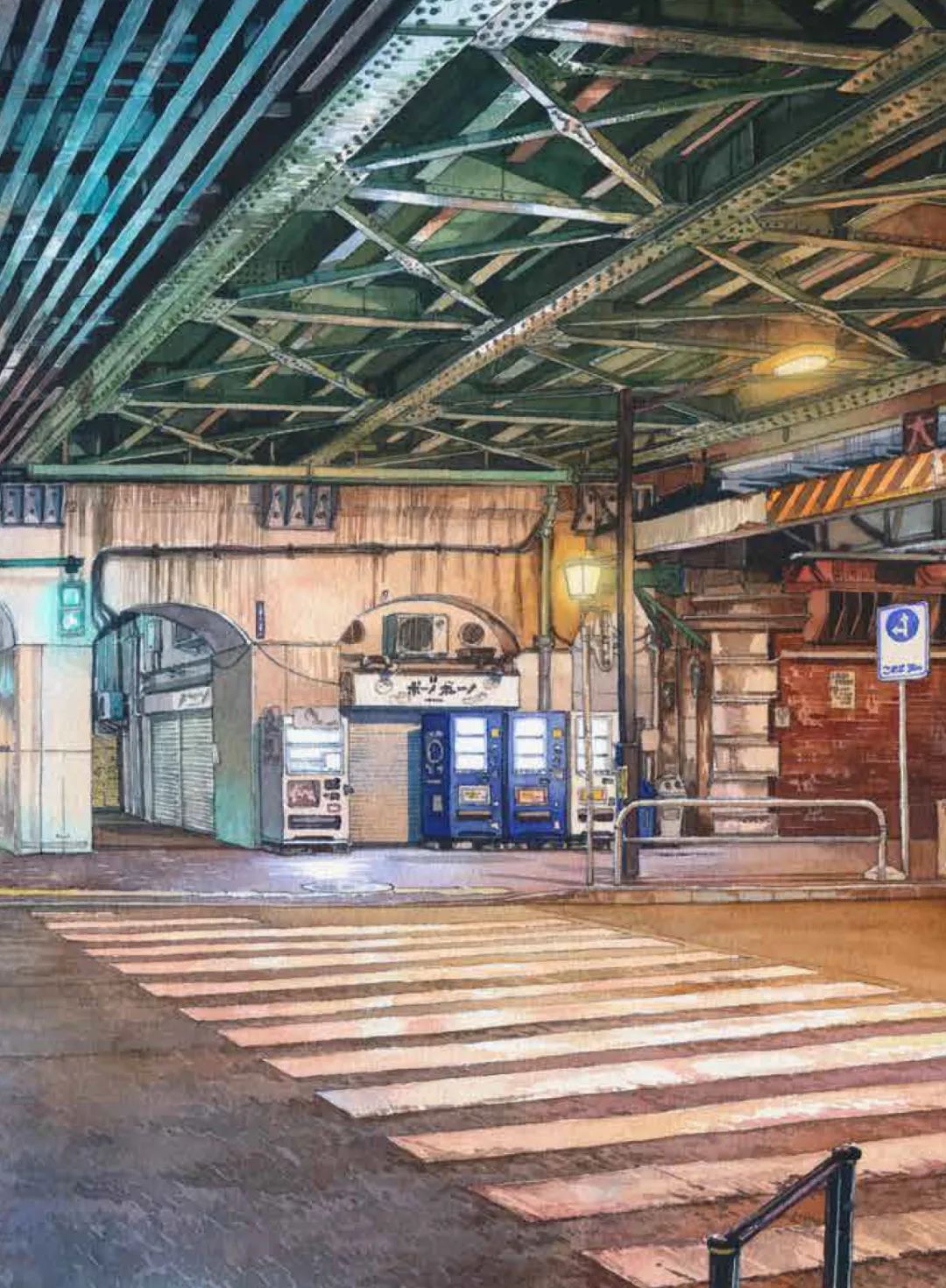 他用艺术家的敏感和观察力,在无数个深夜走进空无一人的东京街头,将见到的景致画下来。