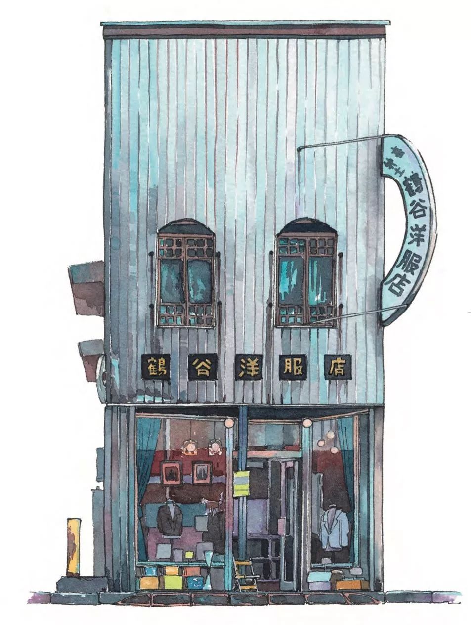 他先是为自己无意间逛到的老店铺拍照,然后再结合曾经的老照片,以水彩插画还原了一些至今消失不见的店铺细节。