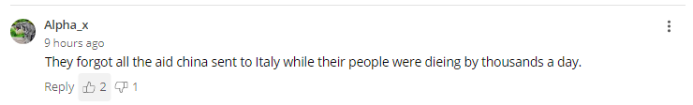 “他们忘记了中国给意大利的所有援助,而他们的民众每天正成千上万地死去。”