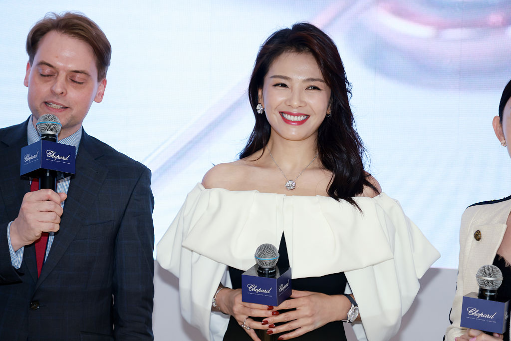 2021年4月16日,上海,刘涛作为萧邦品牌大使来到2021钟表与奇迹高级钟表展萧邦展馆,她明眸皓齿化“微笑女神” ,身穿一字肩连衣裙气质出众。