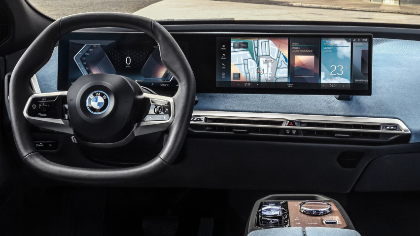 内饰方面,iX车型具备很好的空间表现,一体式头枕的座椅以及全景天窗营造出一个豪华的座舱。与现款宝马车型相比,它的车内按钮数量减少了大约50%,中控台的大尺寸一体式曲面屏的显示效果清晰,驾驶者可以通过语音、触控等更直接的方式进行操作,实现人与车之间更加友好的互动。iX值得关注的是它融合了宝马集团在(D-ACES)设计、自动驾驶、互联科技、电动化和服务化战略创新领域的最新研发成果,其中就包含了此前已经正式发布的全新iDrive 8.0系统。
