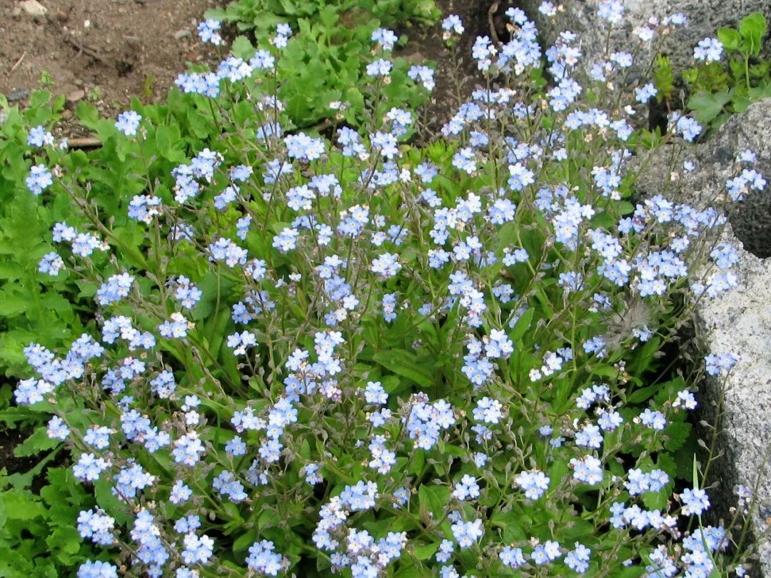 勿忘我在自然界都是生长在树荫下的,它喜欢充足的散射光,不喜欢暴晒或过度阴暗的环境,现在已经养成了迷人的景观植物,它一般是在早春的时候开花的,花朵是呈蓝色或蓝紫色的,它的花朵特别精致小巧,都是五片花瓣的蓝色花。
