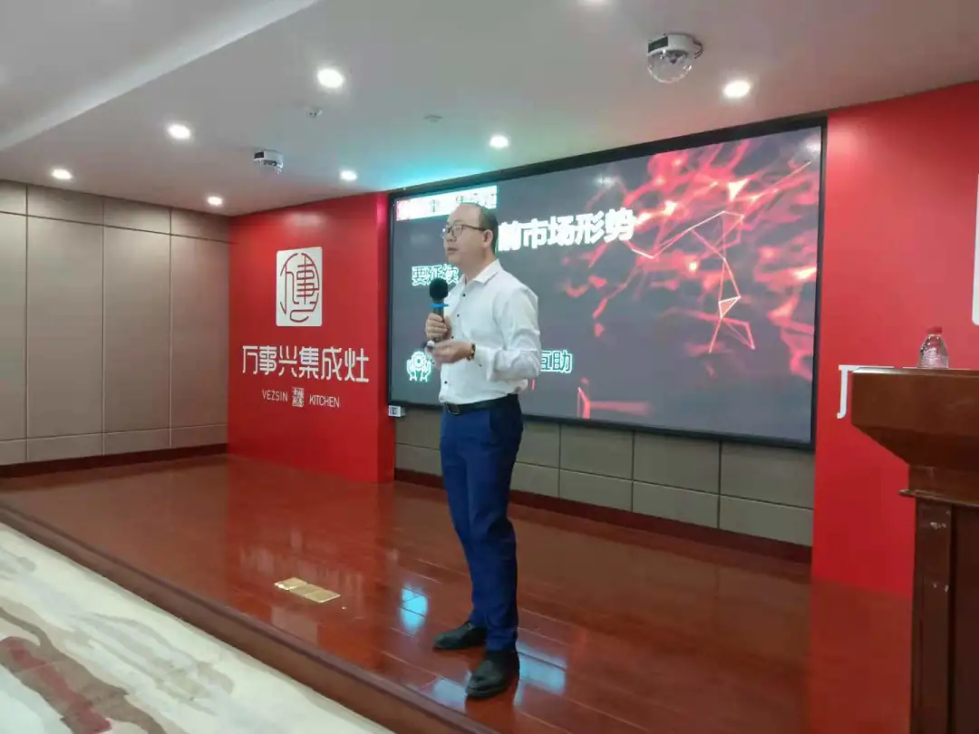 培训会上销售部部长邱英亮先生给经销商进行市场分析演讲,更针对愈演愈烈的市场经济环境,做厨卫电器的经销商们究竟如何与时俱进、与时偕行!