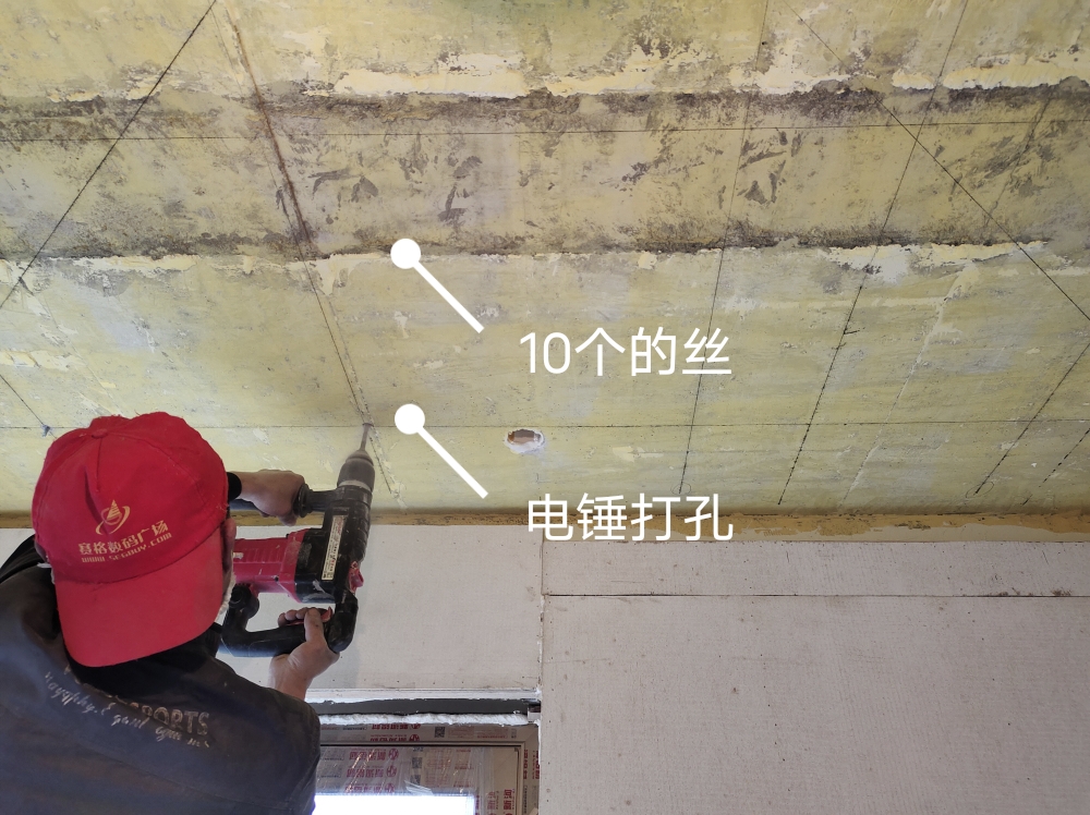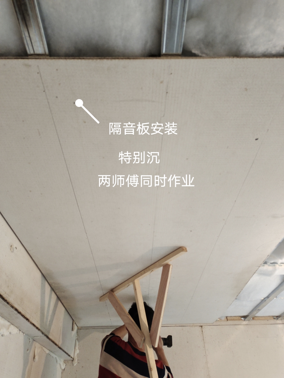 9、隔音板整板上顶特别重,需要两个师傅+支撑架才能安装到位。