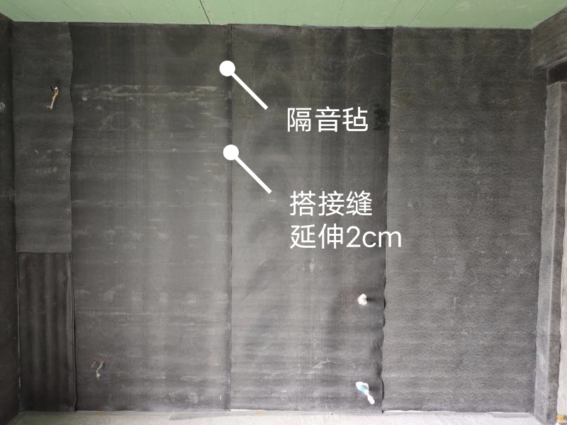 13、隔音毡的拼接处需要延伸搭接2公分左右,做到无缝对接,保证整体性。