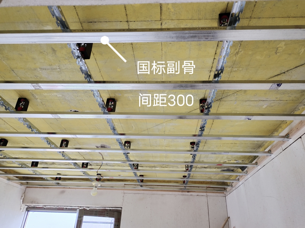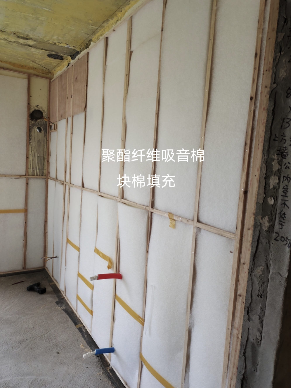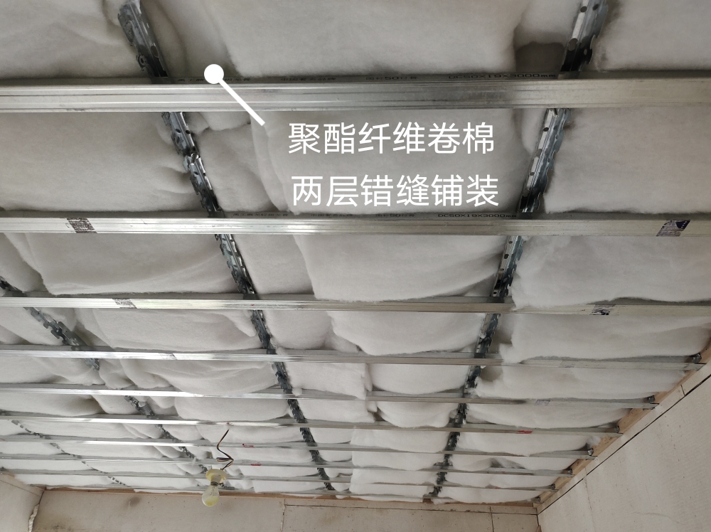 5、充吸声棉,聚酯纤维块棉无气味、无粉尘、不扎手,符合家装环保,按龙骨架内空尺寸裁剪。