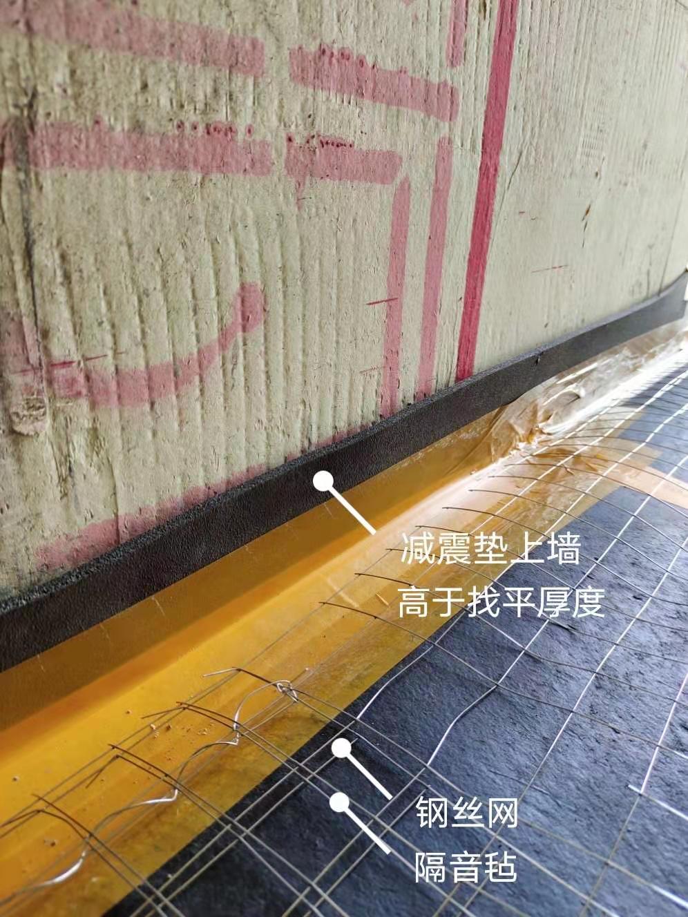 6. 减震垫需要返边上墙,超过后面找平层的高度就行。