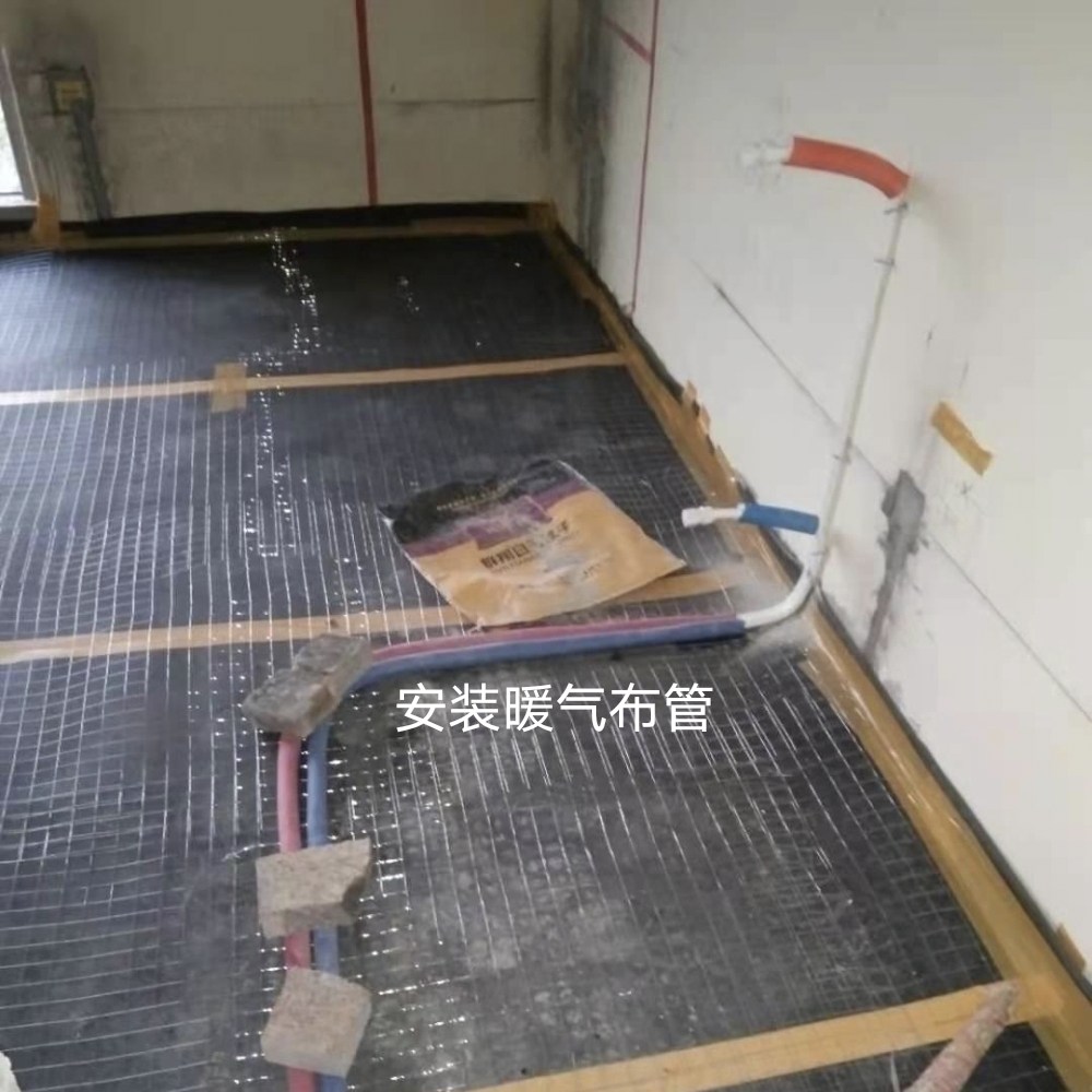 12. 铺设暖气管道,直接压在隔音层上方。顺序不能反,不然暖气管道会要从隔音层穿孔才能上墙,这样会影响隔音层的密封性。