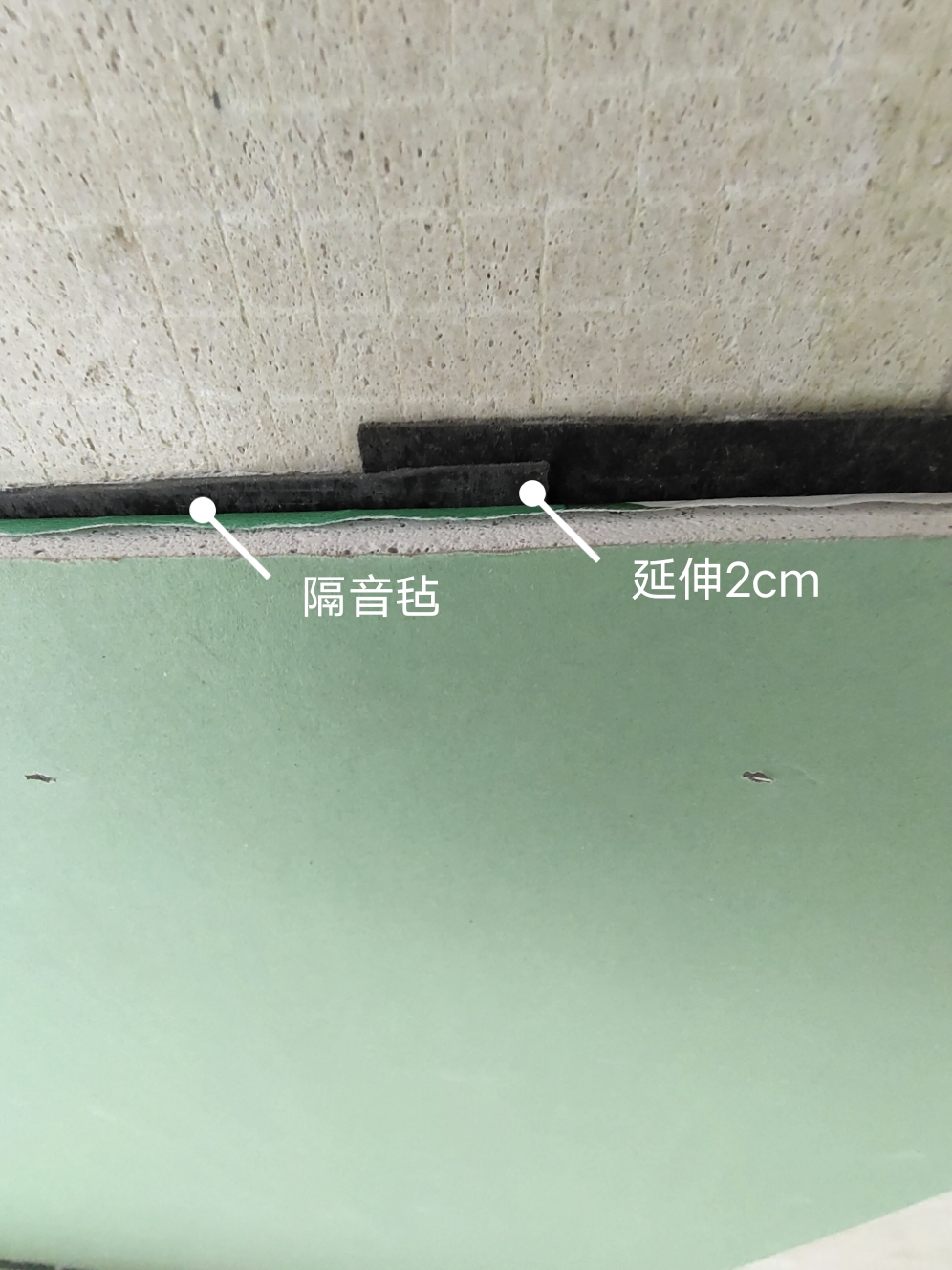 15、隔音毡超出石膏板上顶之后会有卷边。
