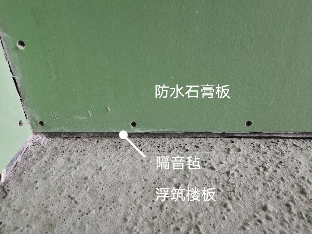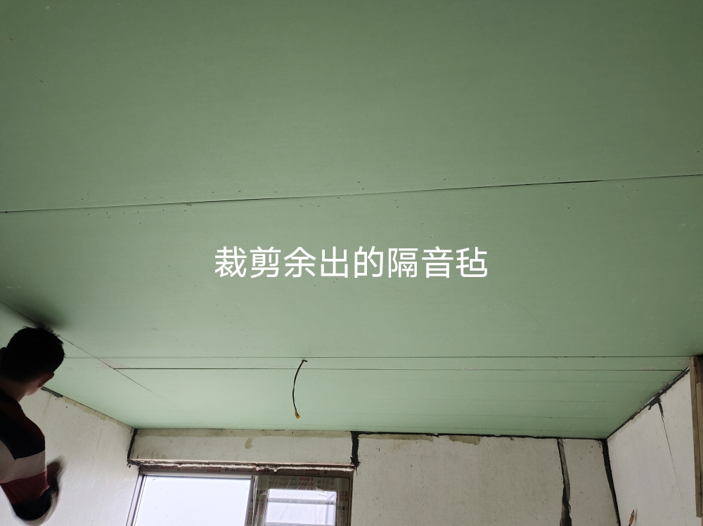 18、最后一步,裁掉底部多余的隔音毡,隔音墙体和浮筑地板没有接触,断开了刚性连接。