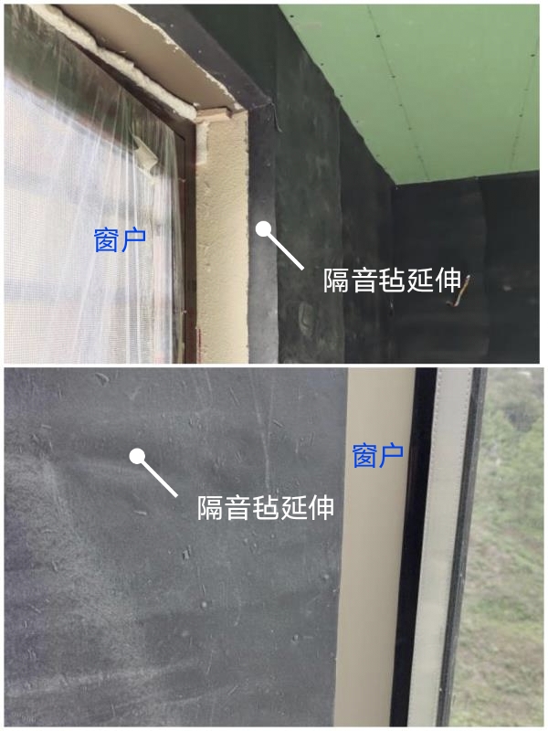 12、隔音毡延伸到窗户内框的,确保完全覆盖隔音层结构。