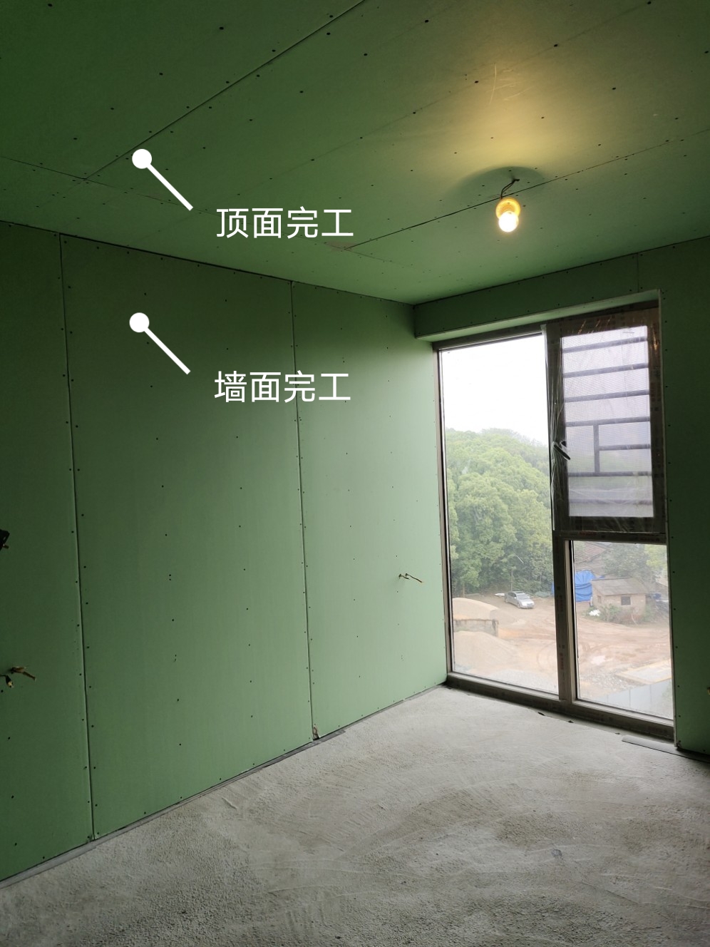 17、铺装泰山牌防水石膏板。完成后室内一下变成绿色很舒服。
