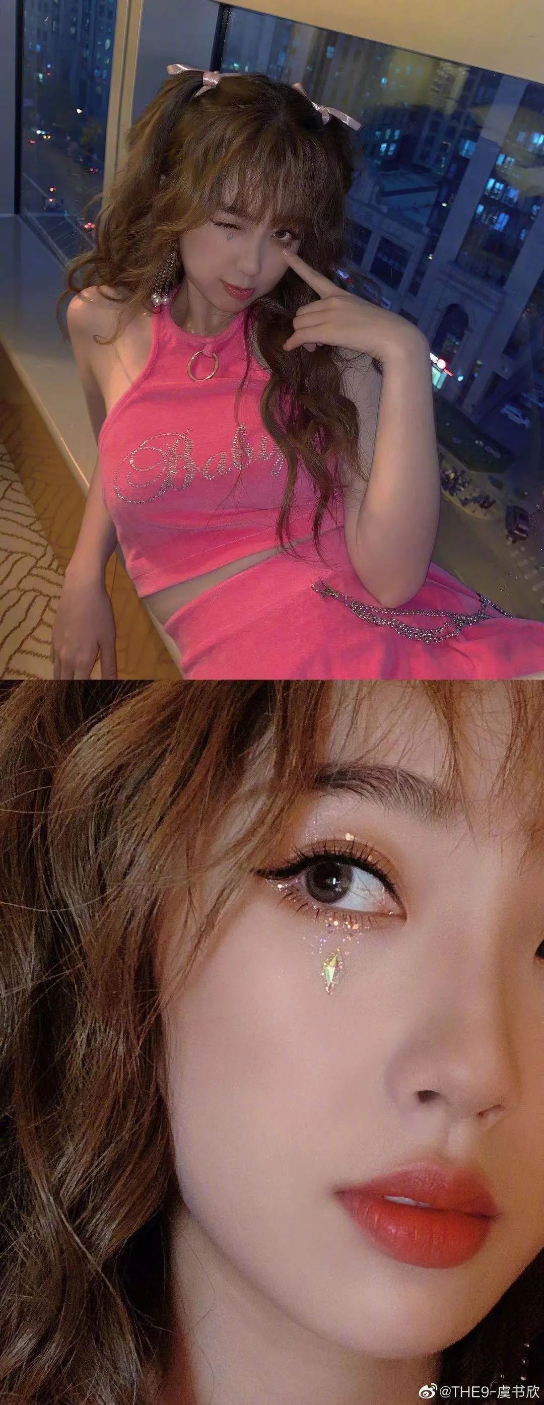 而小编发现,欣欣子最近一直非常偏爱闪亮感的妆容,无论是珠光提亮还是亮片加持,都更加女团了~